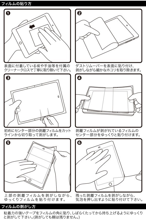 ![]() ★映り込みを軽減する液晶保護フィルム! 太陽光や蛍光灯などの光の映り込みを軽減する液晶保護フィルムです。表面はサラサラとしているため、指紋が付きにくく、スムースな操作感を実現しています。ハードコートも施しているためキズも付きにくく、ホームボタンやスピーカー、各種センサー部分の形状にもこだわりをもっています。またフィルムの貼り方も工夫しています。フィルムは貼る位置を調整するのが難しいですが、このフィルムは剥離フィルムが裂けるようになっており、部分的に貼り付けて位置を固定することで、フィルムを貼りたい位置に正確に貼ることができます。 ![]() ![]() ■対応機種 iPad Pro 10.5インチ ■セット内容 アンチグレアフィルム × 1枚 超極細繊維クリーナークロス × 1枚 ダストリムーバー × 1枚 ※このフィルムは、キズや汚れを完全に防止するものではありません。 ※iPadは精密機械です。作業時の取扱いには十分ご注意ください。 ※写真の色調はご使用のモニターの機種や設定により実際の商品と異なる場合があります。 ※製品の仕様は予告無しに変更となる場合があります。予めご了承ください。 |