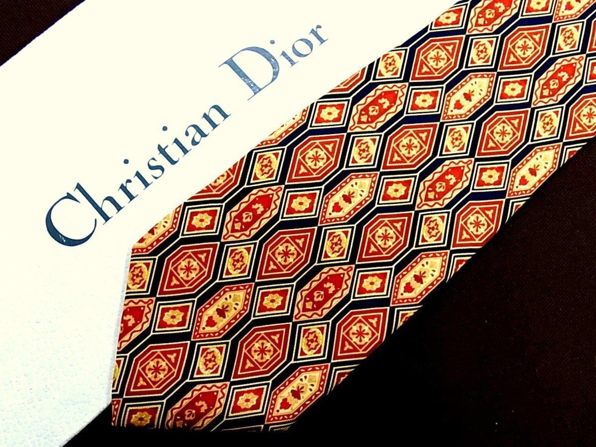 ♪22912C♪良品【花 小花 六角形 柄】ディオール【Dior】ネクタイ