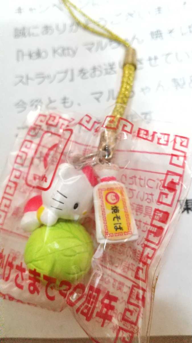 東洋水産!焼きそば!おかげさまで30周年!マルちゃんとHELLO KITTYコラボ!ハローキティ!限定品!根付け!です。