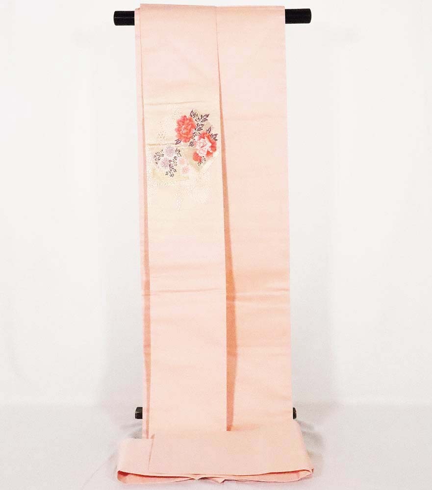 | 色・柄 | 西陣織名古屋帯 ピンク・金箔地 縫い取り菊・牡丹・色紙紋・扇文 上品な名古屋帯です。 (写真では上手く色が出ない場合があります。ご了承下さい) ※お使いのディスプレイの種類や設定の差により 実物の色と画像の色が少々異なることもございます。 |