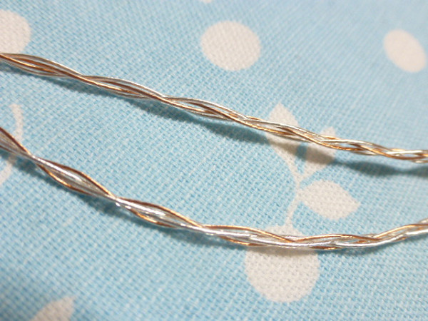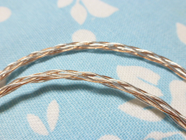 「7NOCC 純銀コート(0.05mm×53本構造)」「7NCOO 純銅(0.05mm×53本構造)」を4本ずつ、計8本使用して作製した