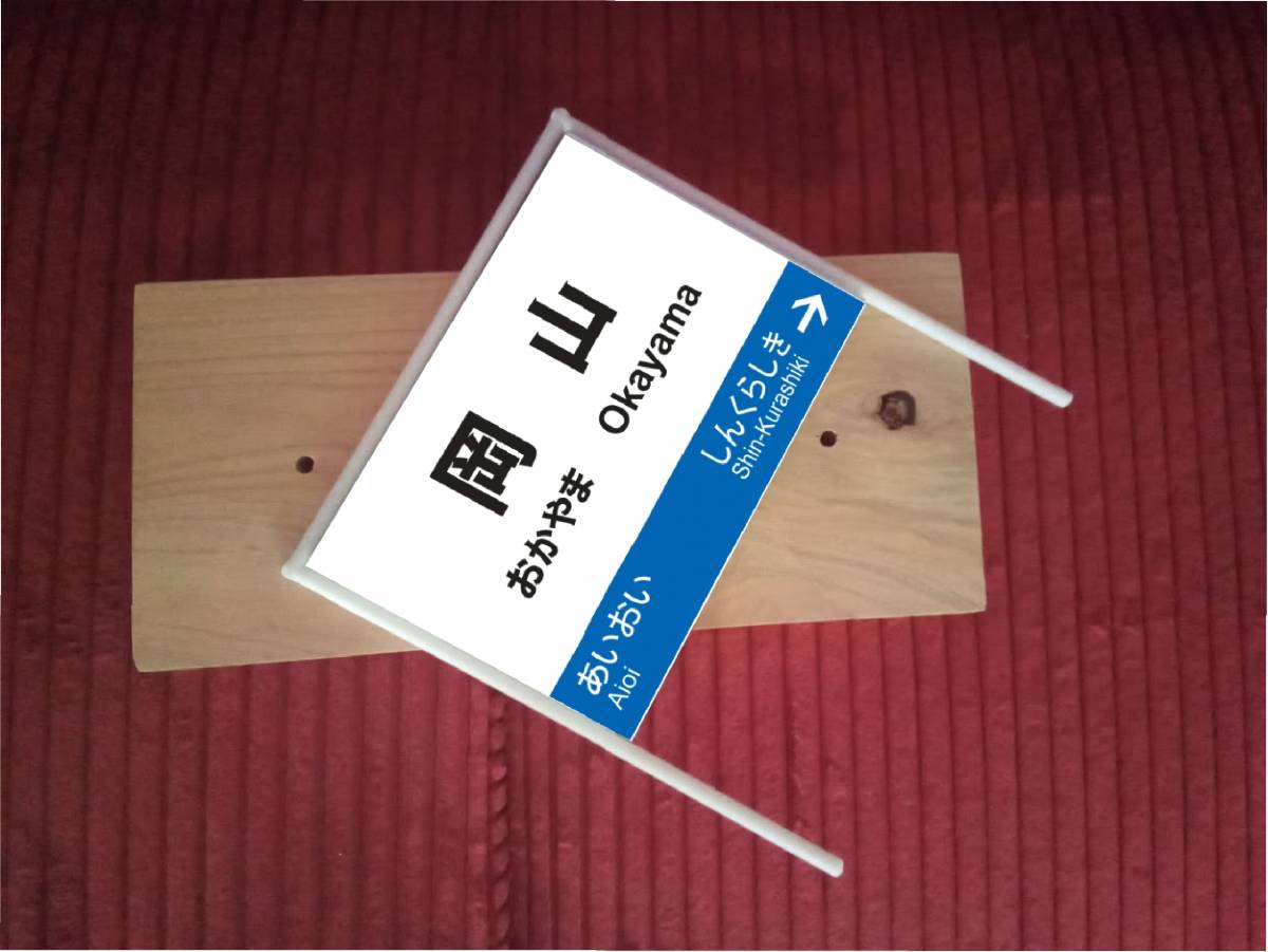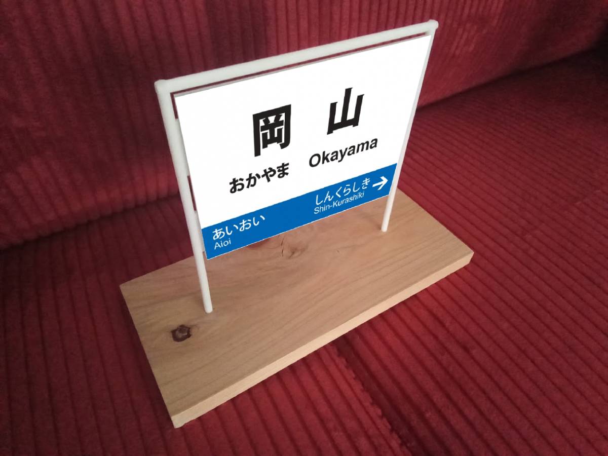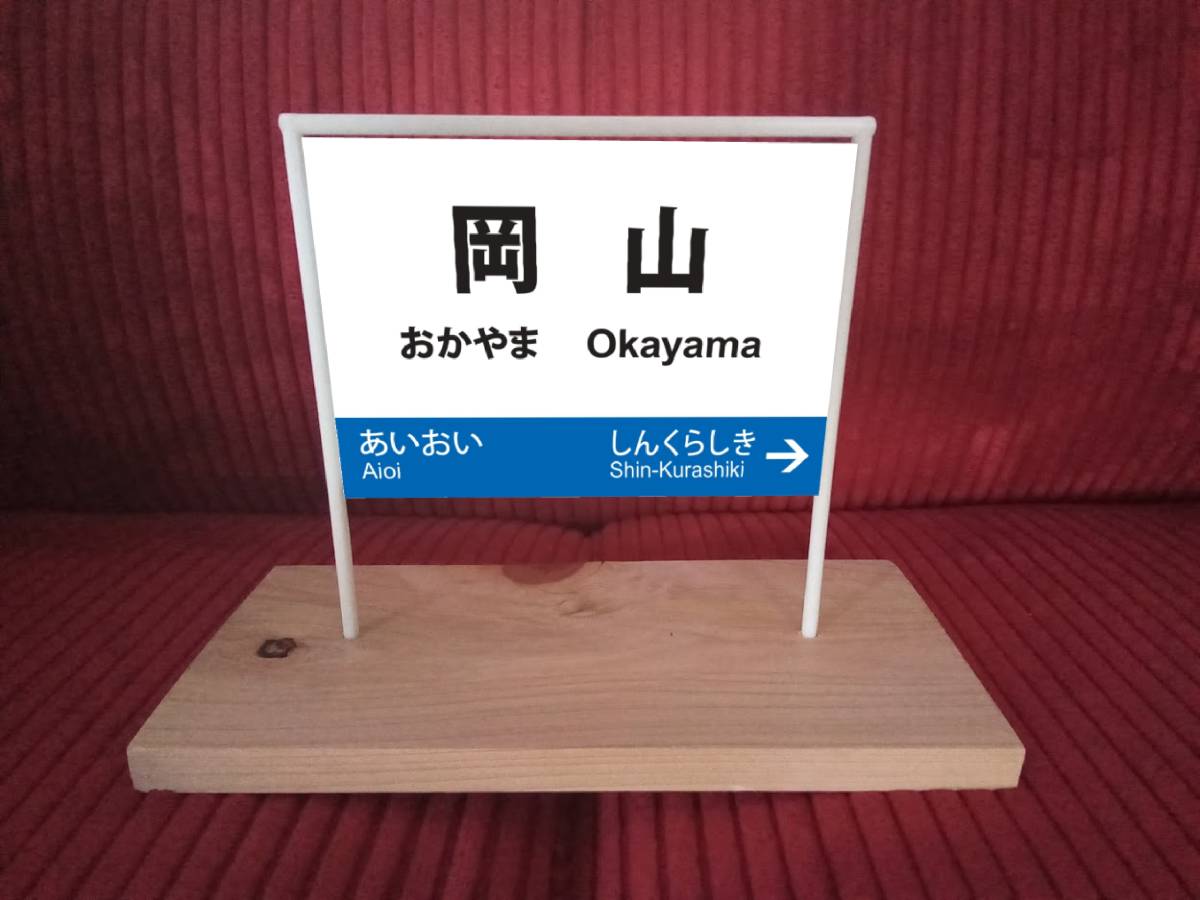 【オーダー無料】鉄道 駅名標 行先案内板 ホームサイン 駅看板 置物 雑貨 ミニチュア駅名板 岡山駅