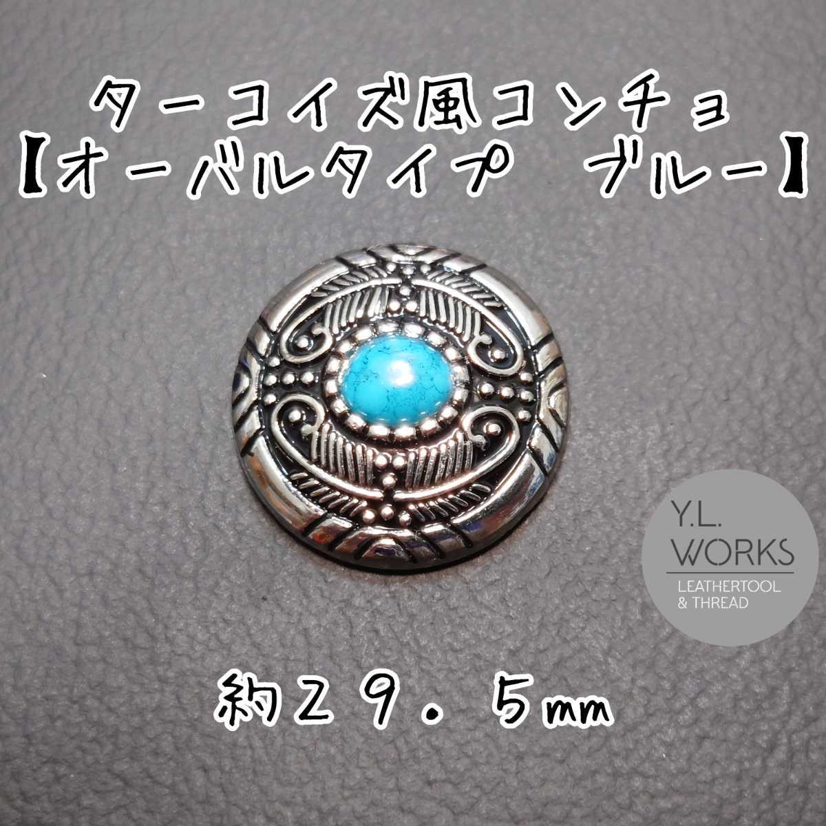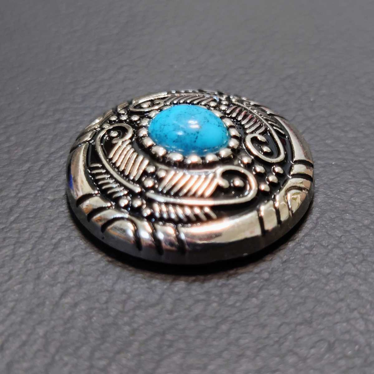 ネジ式の楕円形のターコイズ風ストーンが特徴的なコンチョです。