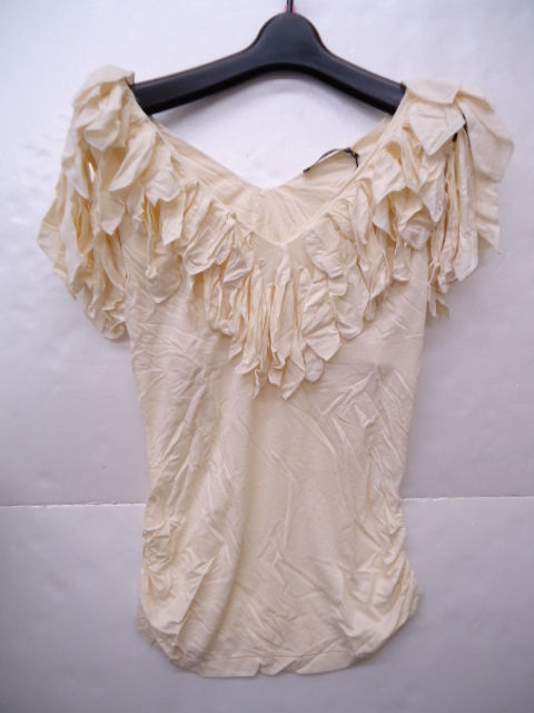 【KCM】ralph-139-L■新品■【RALPH LAUREN/ラルフローレン】レディース ノースリーブフリルカットソー サイズL オフホワイト系