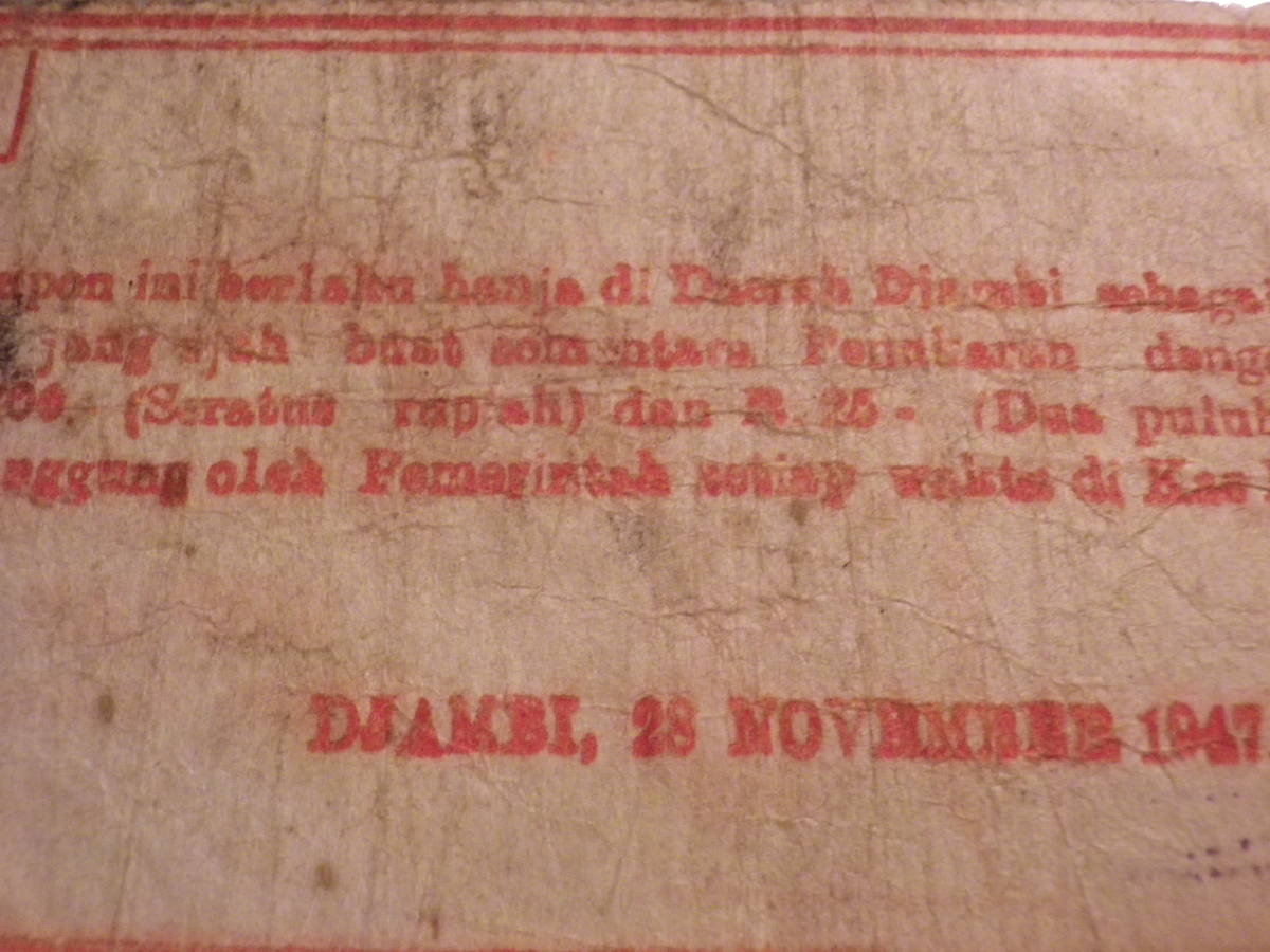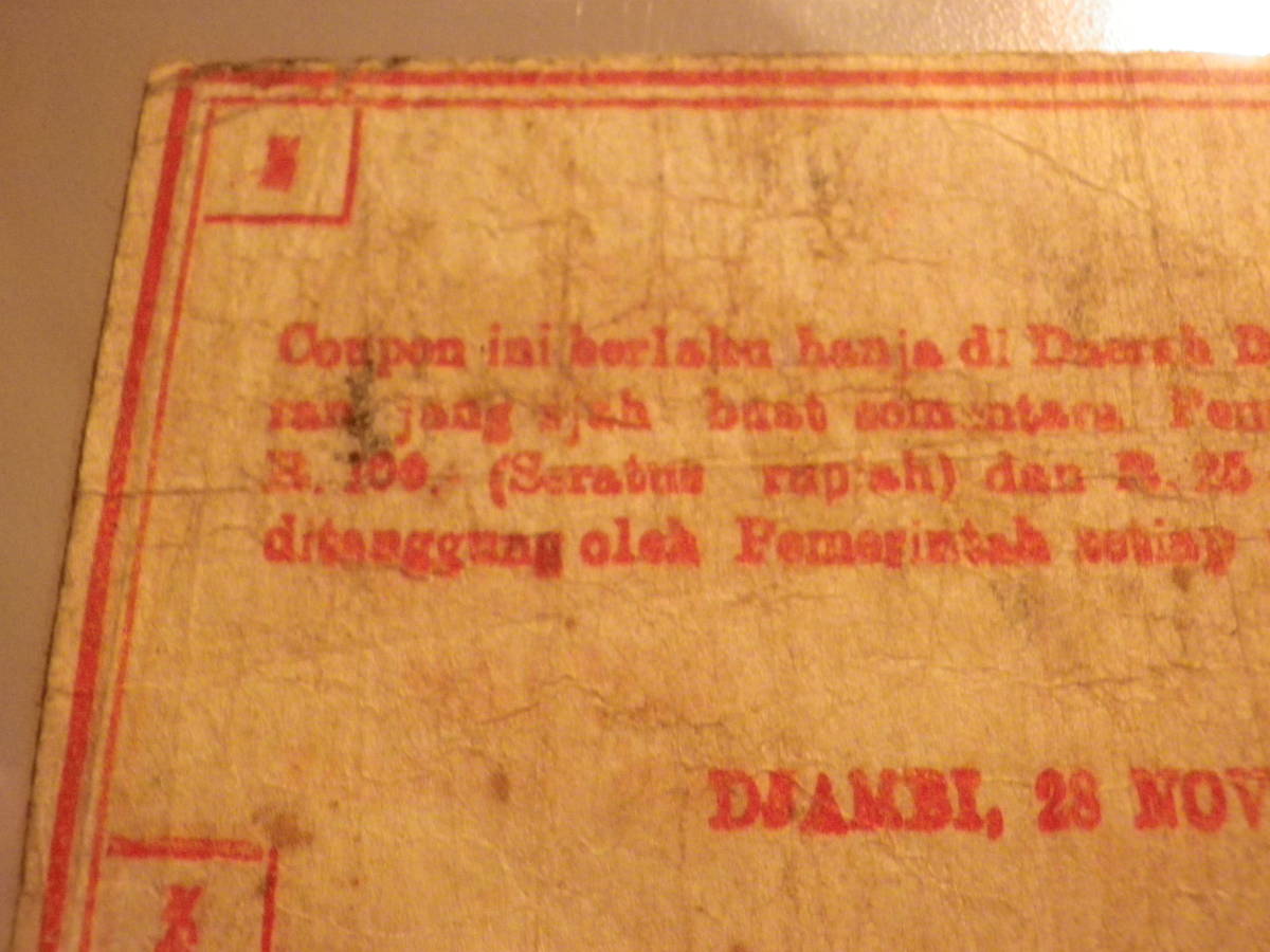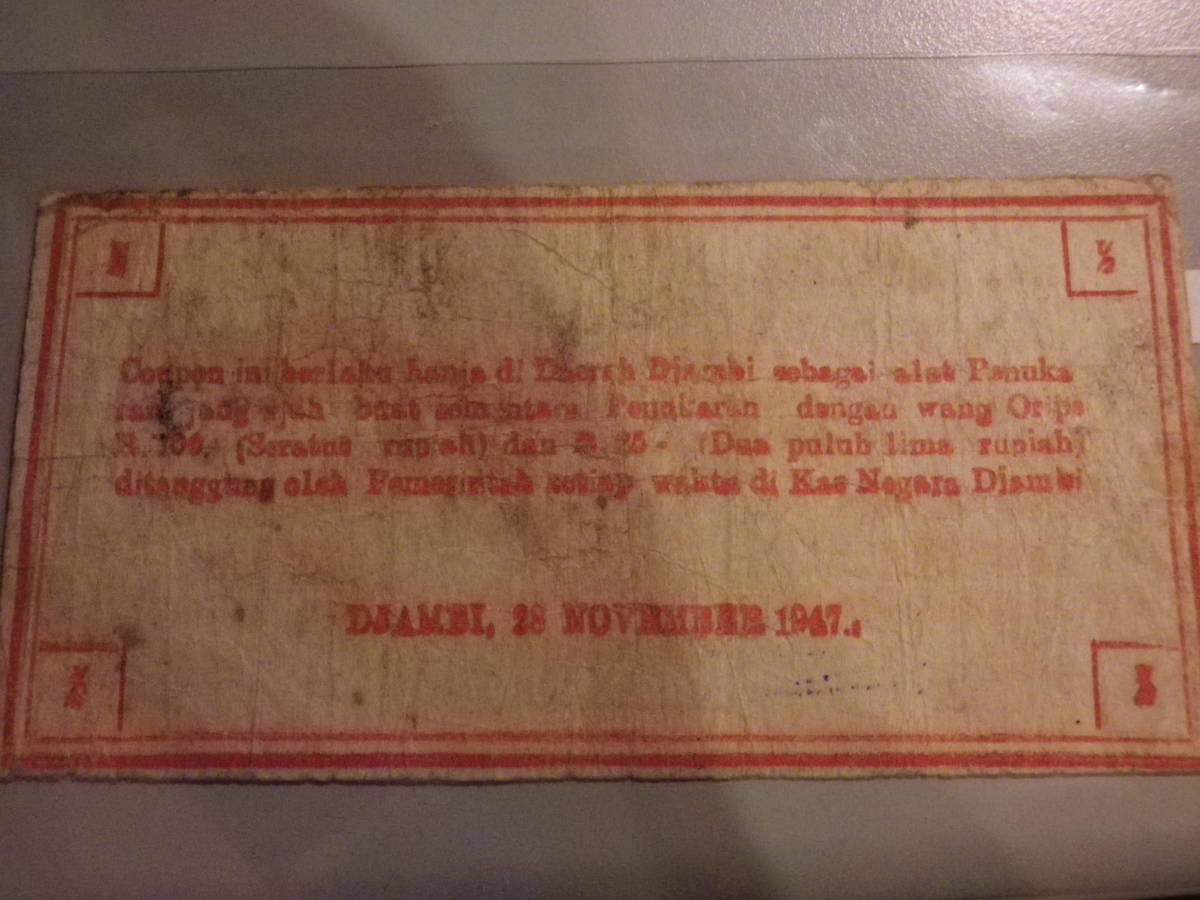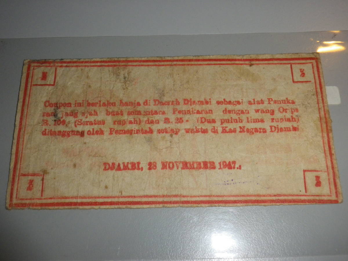 インドネシア 1947年 戦時代用貨幣(COUPON)2分の1 Rupiah 並品