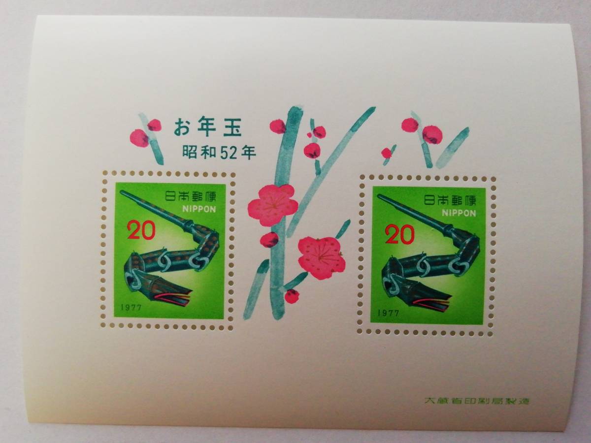 お年玉切手小型シート 昭和52年 己(20円x2) 未使用品②