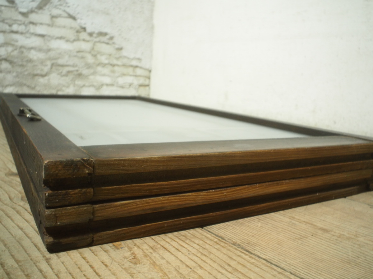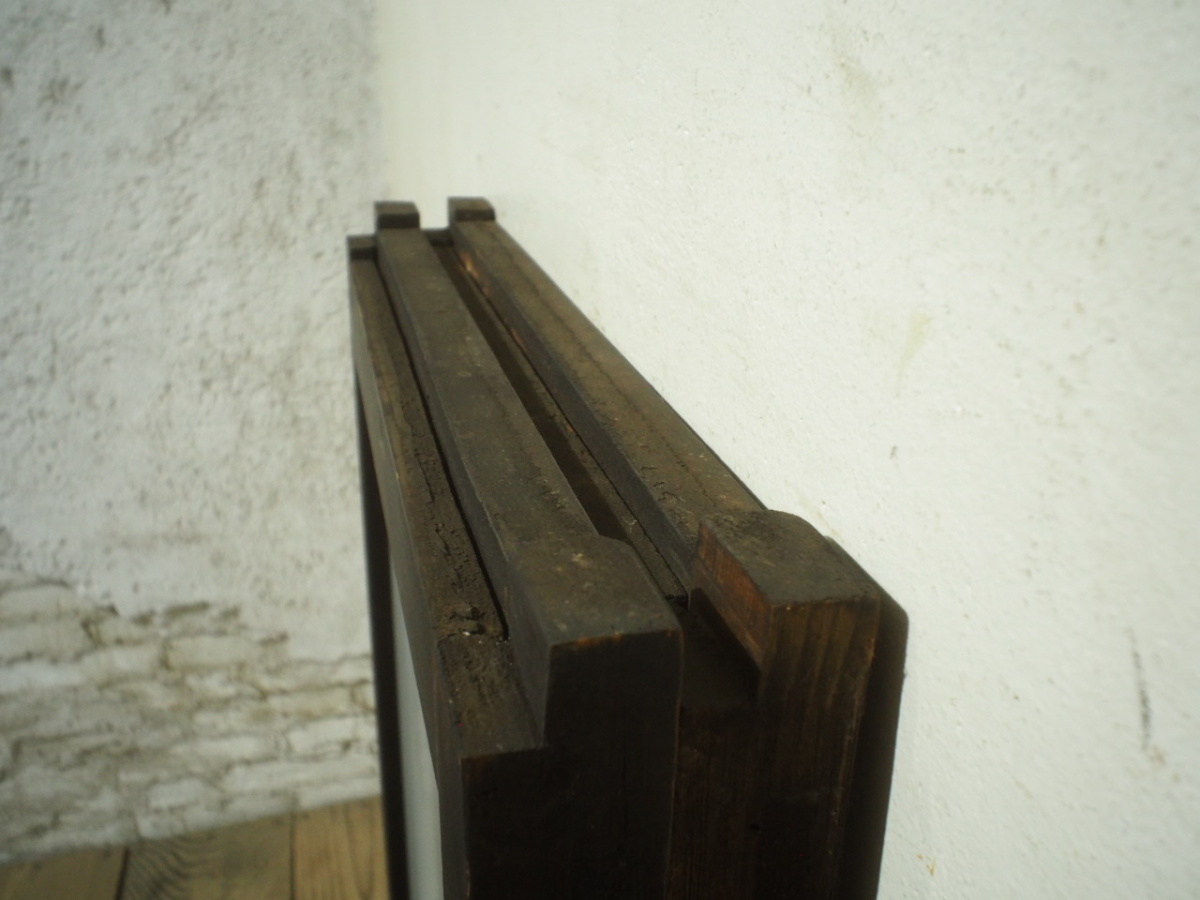 商品情報 | ■商品詳細■ アンティークの古い木枠ガラス戸、2枚セットです。 長年使い込まれた味わいのある品です。 ガラスは、曇りガラスを使用しています。 一般のご家庭はもちろん、レトロな店舗什器にもお勧めです。 経年の傷や欠け、染みや桟の欠品、小穴やガラスに落としきれない汚れ等がありますが、 使用には問題ありません。 ガラスにヒビや割れはありません。 古い物とご理解いただければ幸いです。 ご不明な点などありましたら、質問欄にてお願いします。 ■サイズ■ 全体(最大値) (H 84cm×W 41cm×D 3cm)×2枚 竪框 3cm 多少の誤差はご了承下さい。 |