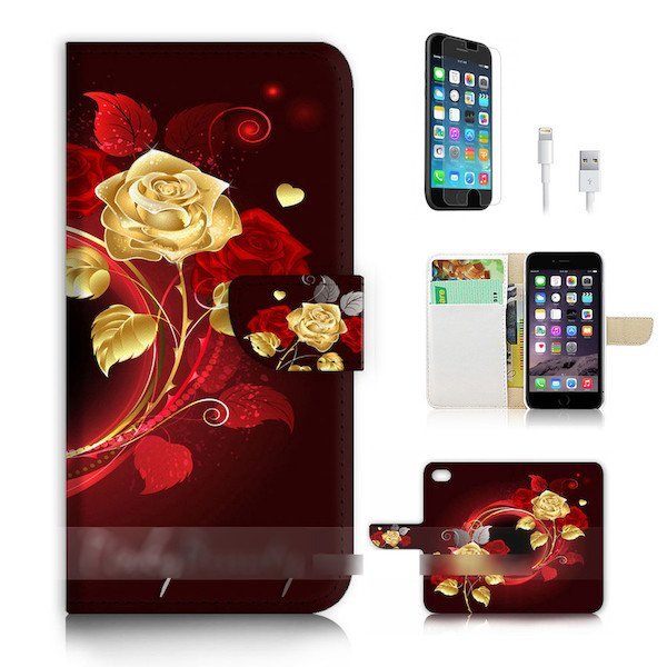 iPhone 8 アイフォン 8 アイフォーン 8 バラ 薔薇 ゴールド 金 スマホケース 充電ケーブル フィルム付