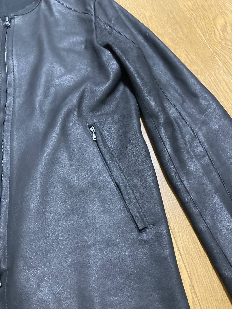 美品☆[BACKLASH] 定価15万 インディアンゴート ダブルフェイス デストロイ加工 シングルライダース レザージャケット 1 S 1743-02 山羊革 ブラック バックラッシュ