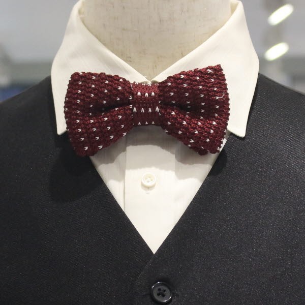 編んで作られたニットタイは柔らかで着け心地の良い蝶ネクタイ。