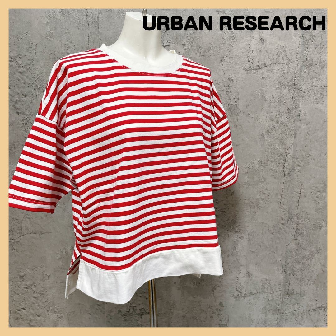 ★ 美品 アーバンリサーチ、URBAN RESEARCH ボーダーシャツ Tシャツ 半袖シャツ カットソー トップス レディース サイズF レッド 玉FL1291