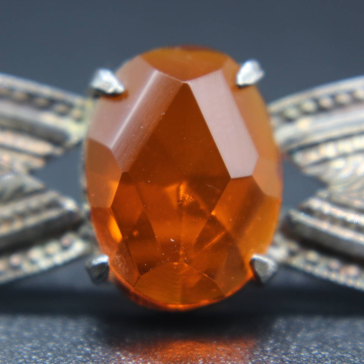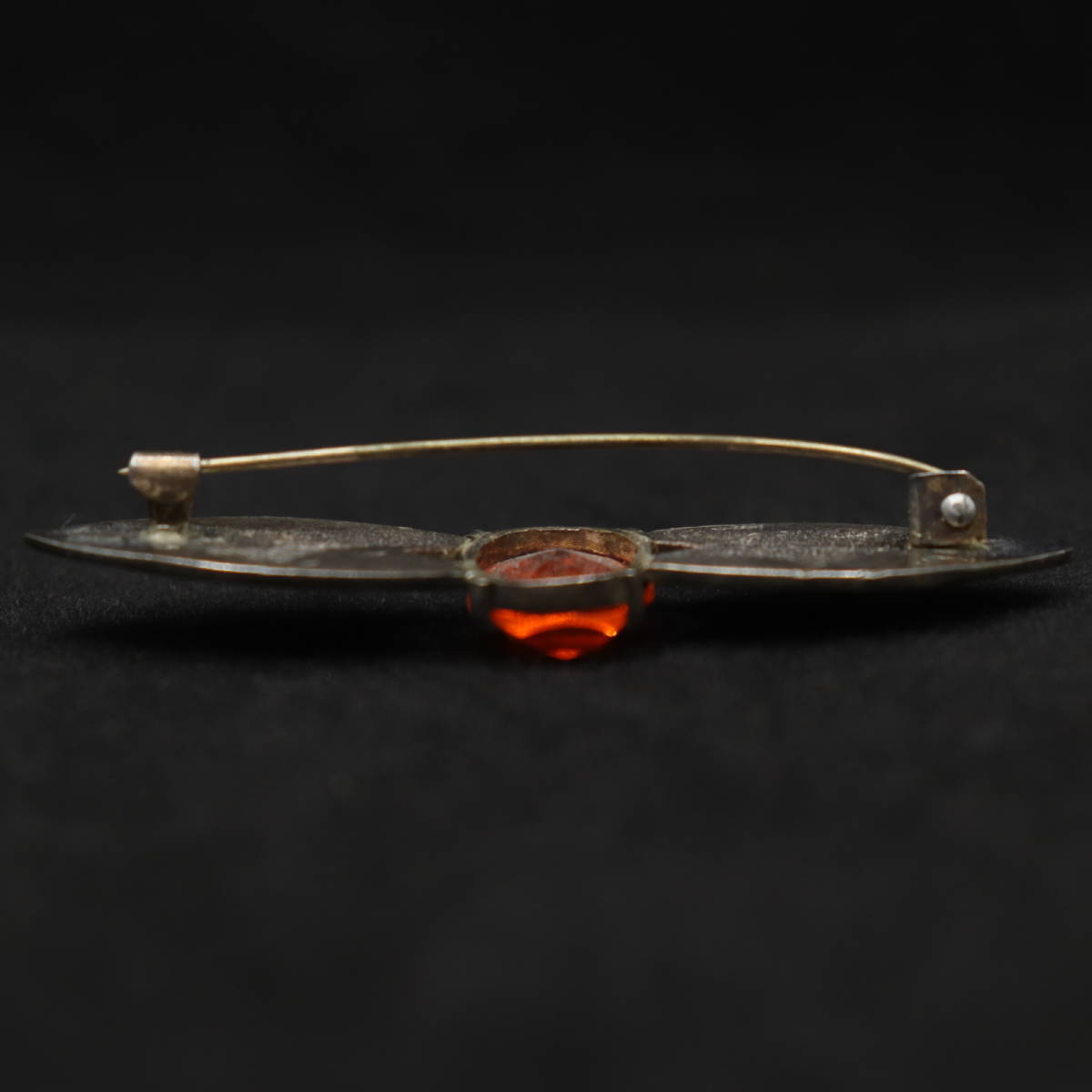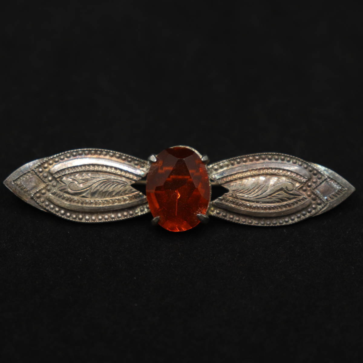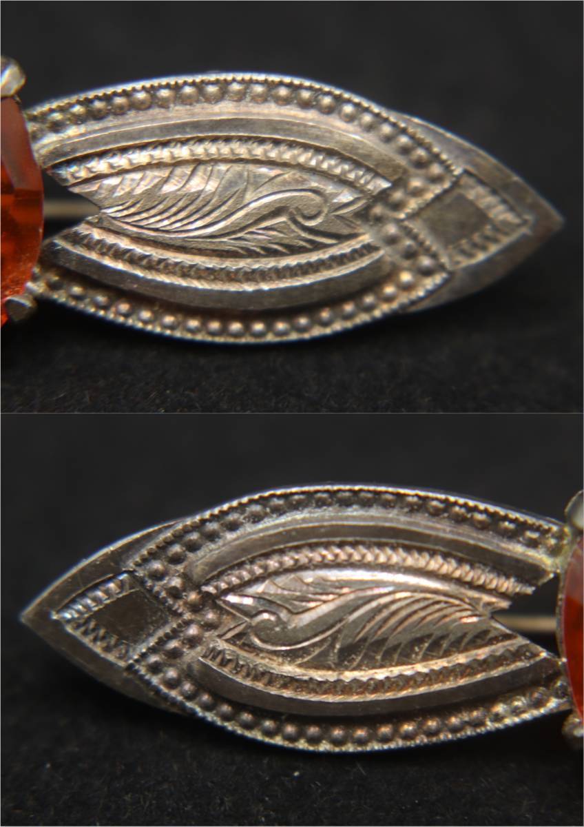 アンティーク / ブローチ / オレンジ / 硝子 / 銀製 / 大正ロマン / 日本製 / 彫金 / シルバー / ① でございます。