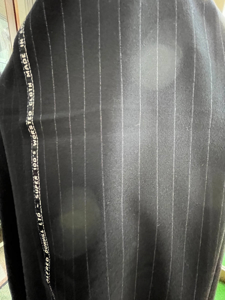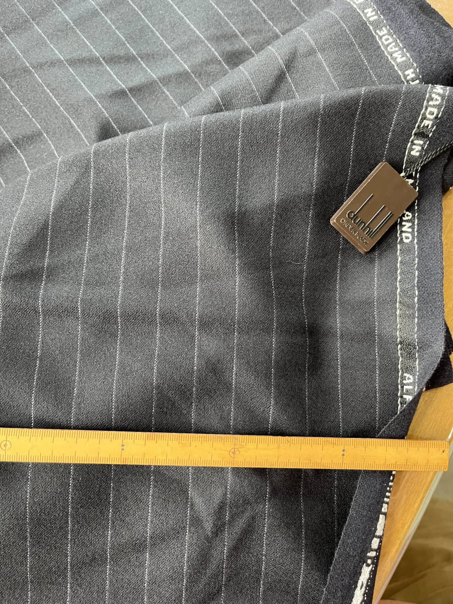 【正規ルート仕入品】早いもの勝 ダンヒル イギリス製 紺系ペンシルストライプ 柄巾→約1.8㎝ 毛100% 生地の重さ950g 生地の長さW巾で3.2m 織ネーム無し 着用シーズン⇒秋冬 発送方法⇒佐川急便60サイズ 検索01373380