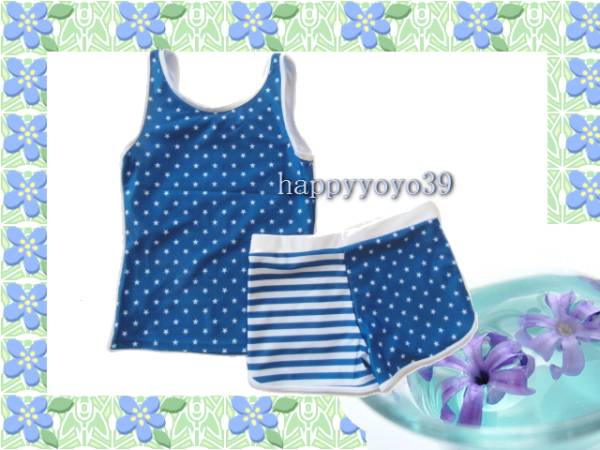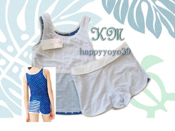 激安スタート新品150 KITTY MONAキティモナ紺 女児 水着2点セット セパレート タンキニ+ショートパンツ 女子