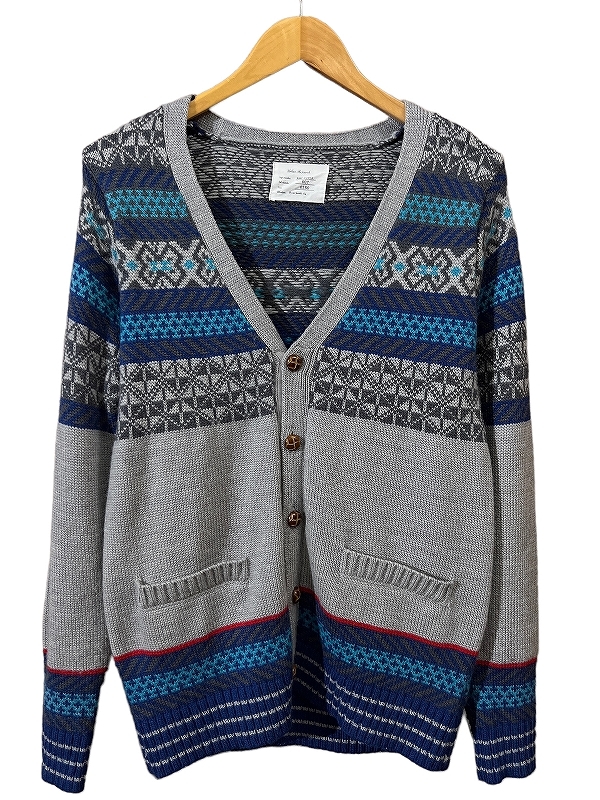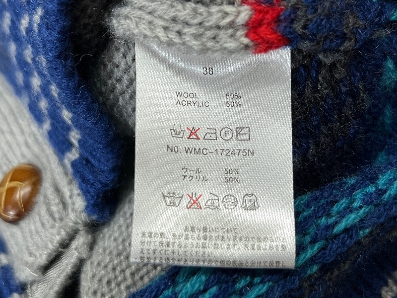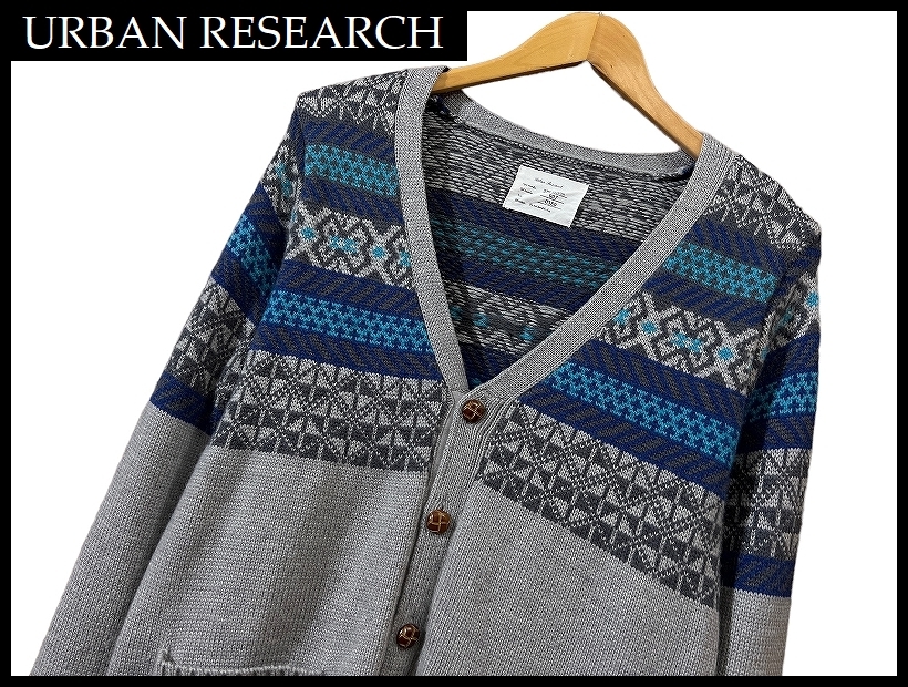 送料無料 G② URBAN RESEARCH アーバンリサーチ 幾何学模様 ノルディック柄 マルチ ボーダー アクリル ウール ニット カーディガン グレー