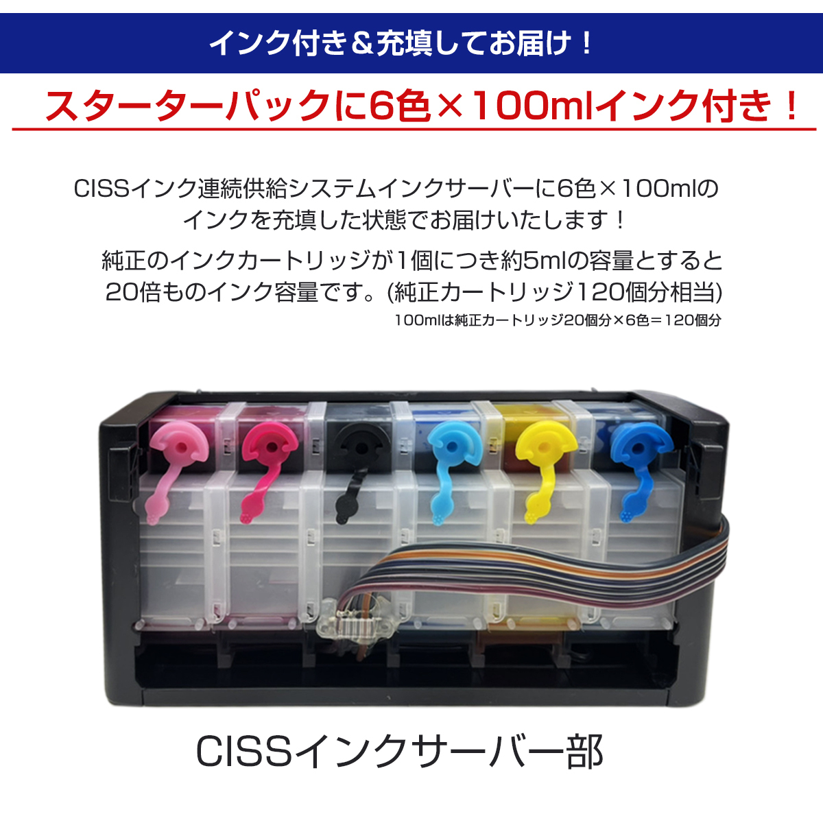 CISSインク連続供給システムのインクサーバーに6色×100mlのインクを充填した状態でお届けいたします。