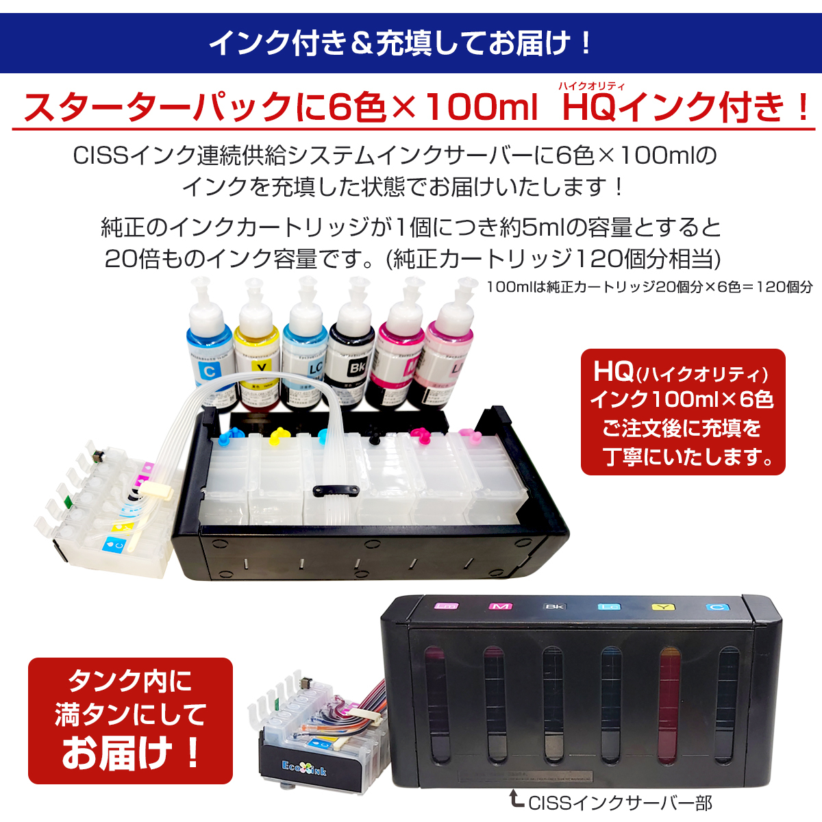 スターターパックには6色×100ml HQ(ハイクオリティ)インク付き