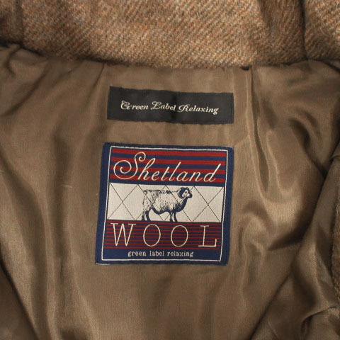 グリーンレーベルリラクシング ユナイテッドアローズ green label relaxing ダウンコート shetland Wool ウール ツイード 茶 38