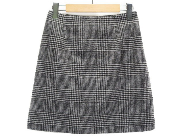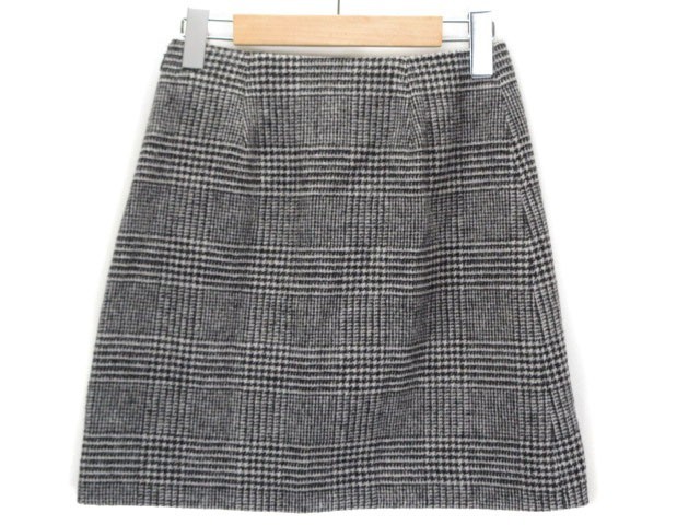 ナチュラルビューティーベーシック NATURAL BEAUTY BASIC スカート 台形 グレンチェック ウール S グレー レディース