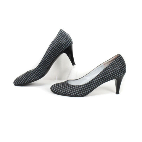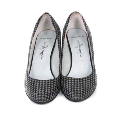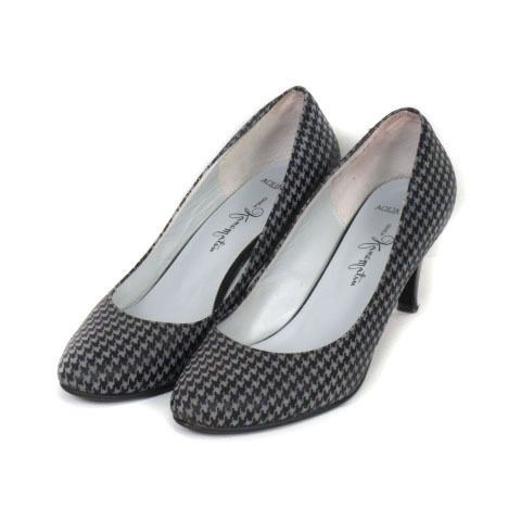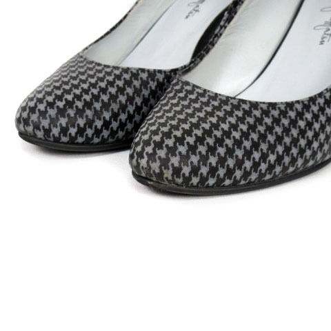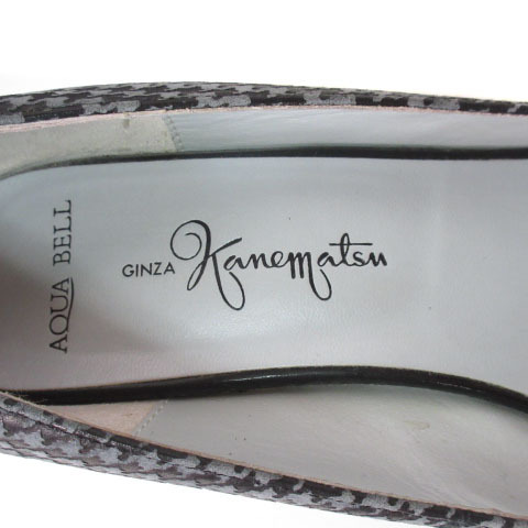 銀座かねまつ GINZA Kanematsu AQUA BELL パンプス アーモンドトゥ 千鳥格子 23 グレー 黒 ブラック レディース