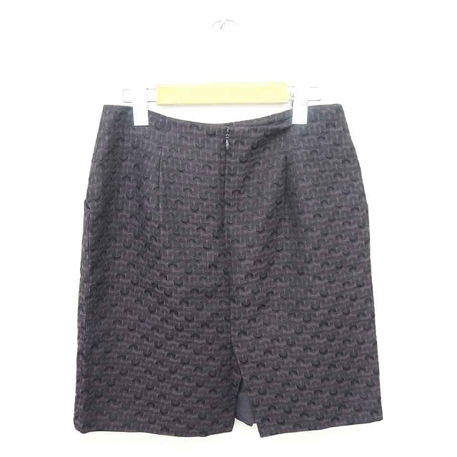 ノーリーズ Nolley's PINK スカート タイト ひざ丈 総柄 バックジップ 薄手 36 紫 黒 パープル ブラック /TT14 レディース