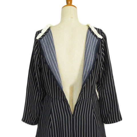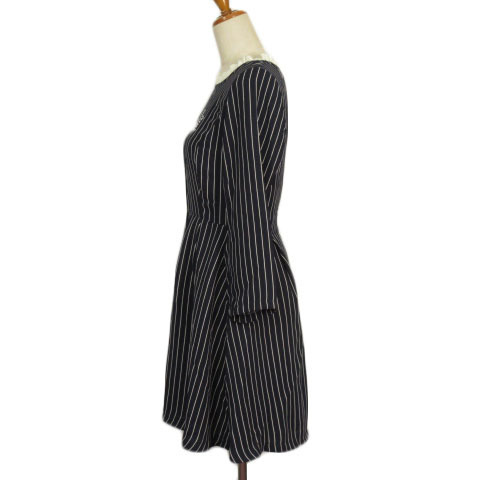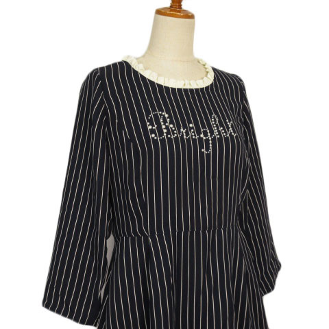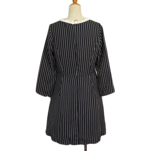 ジ エンポリアム THE EMPORIUM ワンピース ストライプ フリル Bright 七分袖 L 紺 ネイビー レディース