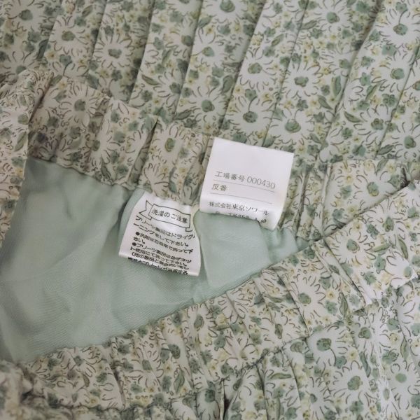 商品詳細 | NO-A4351 ★【ブランド】 *ブランドタグなし 株式会社 東京ソワール ★【特徴】 *さらりとした上質な薄手素材を使用しており、軽やかな履き心地のお品です。 薄グレーを基調に美しく咲き誇ったお花デザインが可愛らしく、とても目を惹きます! ウエスト部分はゆったりと窮屈感なくお召し頂ける総ゴム仕様。 裾部分まで繊細に施されたプリーツデザインの美揺れスカート、是非いかがでしょうか♪ ・裏地○ ・伸縮性× ・ポケット× ・季節性 春夏向け ※状態につきましては当社基準のランク表も合わせてご参考下さい。 | ||||||||||
