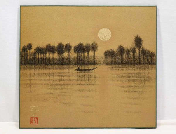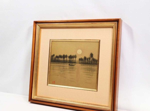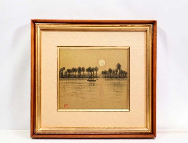 平山郁夫 大塚工藝社正規品「ユーフラテス河 朝陽」画寸28cm×25cm 夕焼けに染まる穏やかな流れのユーフラテス河と風もなく静かな川岸 5663