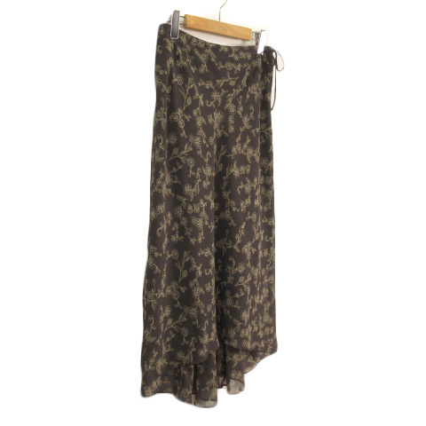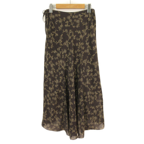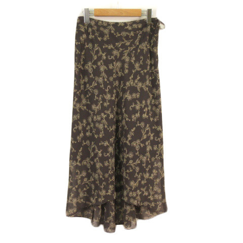 コムサイズム COMME CA ISM スカート フレア アシンメトリー 花柄 シフォン L 茶 ブラウン レディース