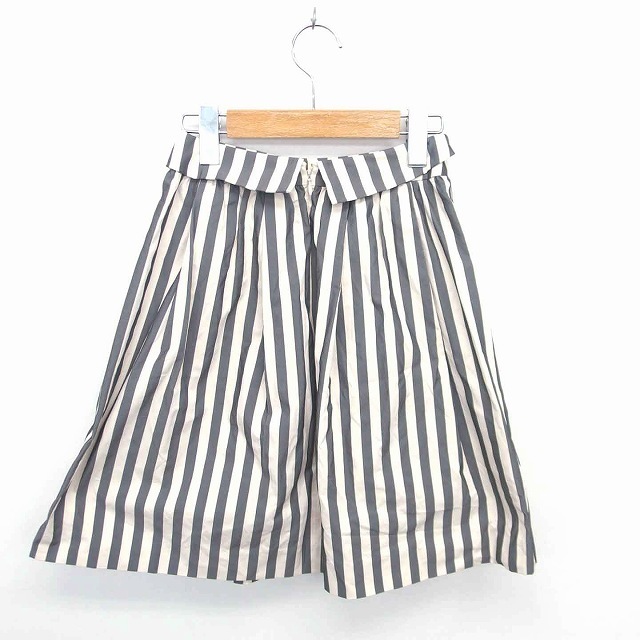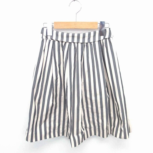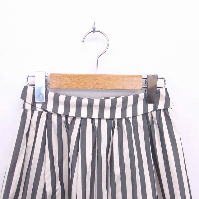クミキョク 組曲 KUMIKYOKU フレア スカート ミニ ストライプ 薄手 S1 ベージュ グレー 薄茶 /TT17 レディース