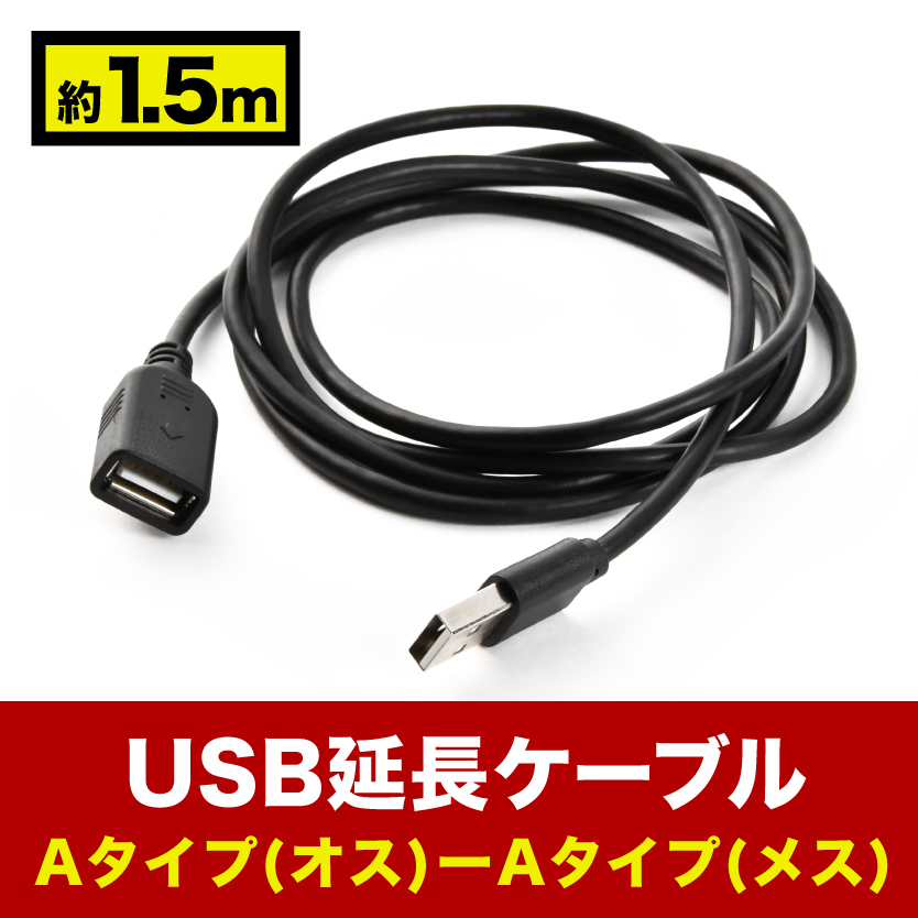 | 約1.5mのAオス-AメスのUSB延長ケーブルです。 【確認事項】 ※必ず端子形状を確認しご購入下さい。 |