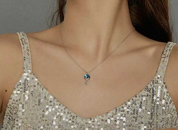 シンプルなネックレスで、屈折率・反射など一番美しく輝く形状に計算されたカットとなっていて、とてもキラキラ輝いて魅せてくれます。