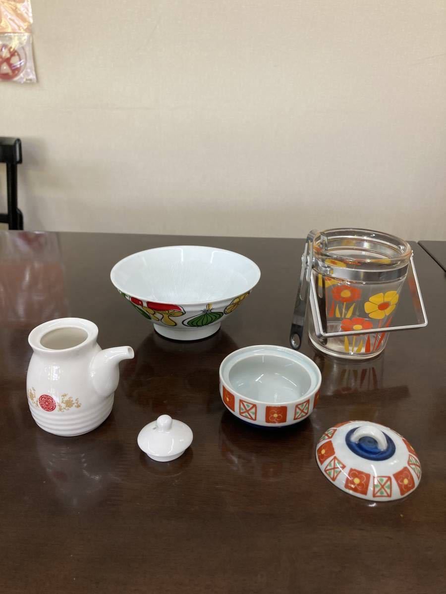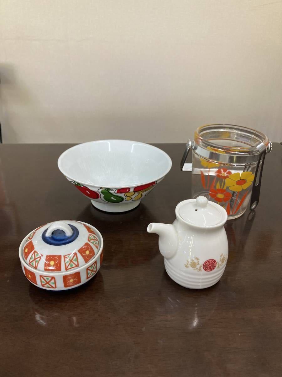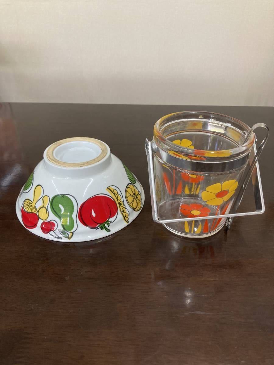 野菜の絵柄が楽しいすり鉢、氷入れ、蓋付き珍味入れ、たれ入れの4セットです。すり鉢直径17,5高さ7,5㎝氷入れ高さ12,5㎝直径10㎝珍味入れ 高さ 7,5㎝ 直径 9,5㎝たれ入れ高さ11㎝〔蓋も込み)注ぎ口5,5㎝底も5,5㎝