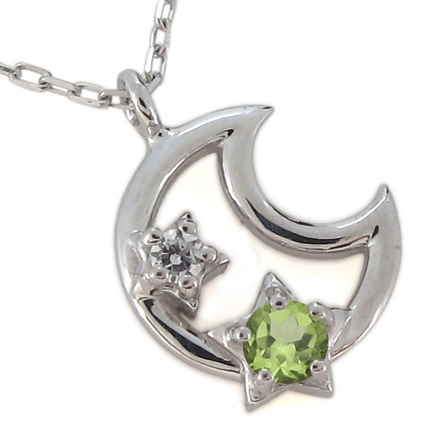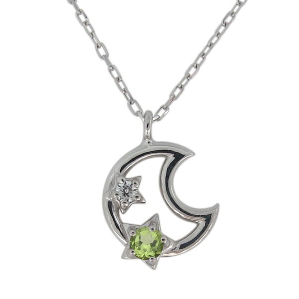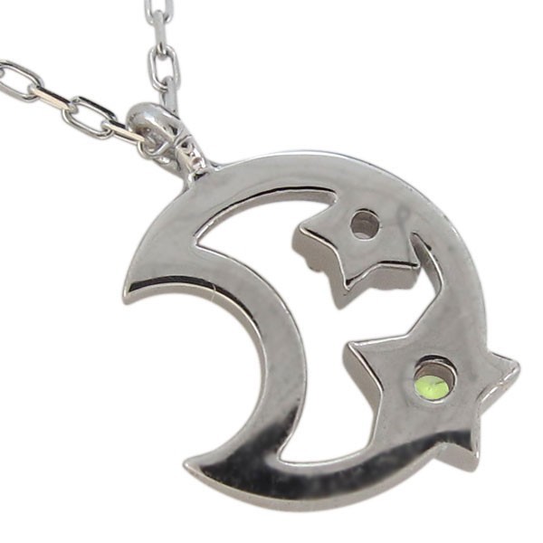 8月誕生石ペリドットを使用したプラチナ製の、三日月(ムーン)と星(スター)モチーフネックレス・ペンダントです。