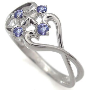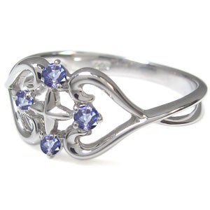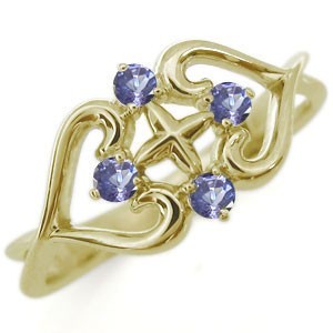 12月誕生石タンザナイトを使用した、18金製のクロス・ハートモチーフリング(指輪)です。