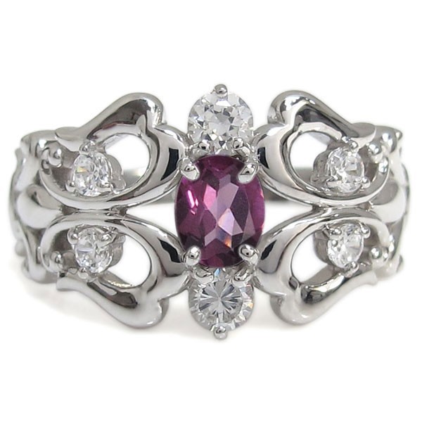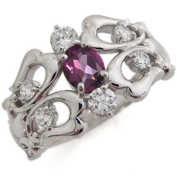 ■石名:主石 ロードライトガーネット(オーバル 約 5.0mm×7.0mm/天然石使用)脇石 ダイヤモンド(6石合計で約 0.333ct/天然石使用)