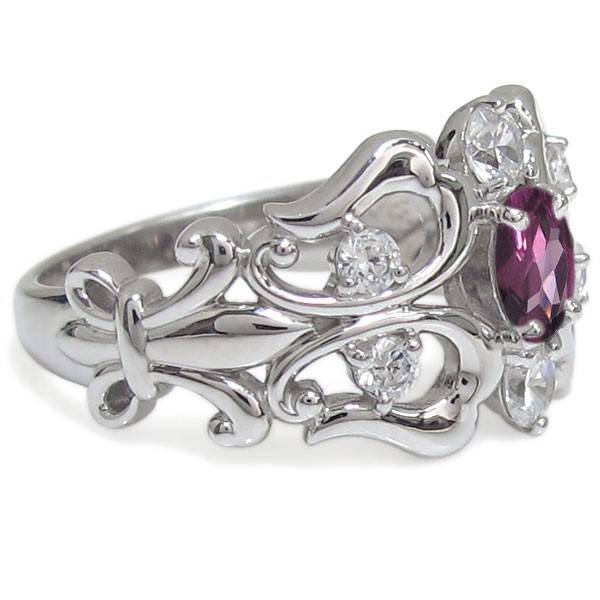 1月誕生石大粒ロードライトガーネットを一粒使用した、プラチナ製の百合の紋章リング(指輪)です。