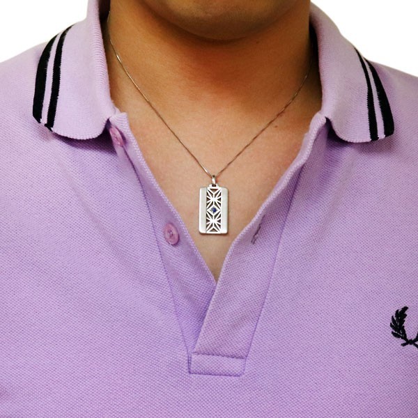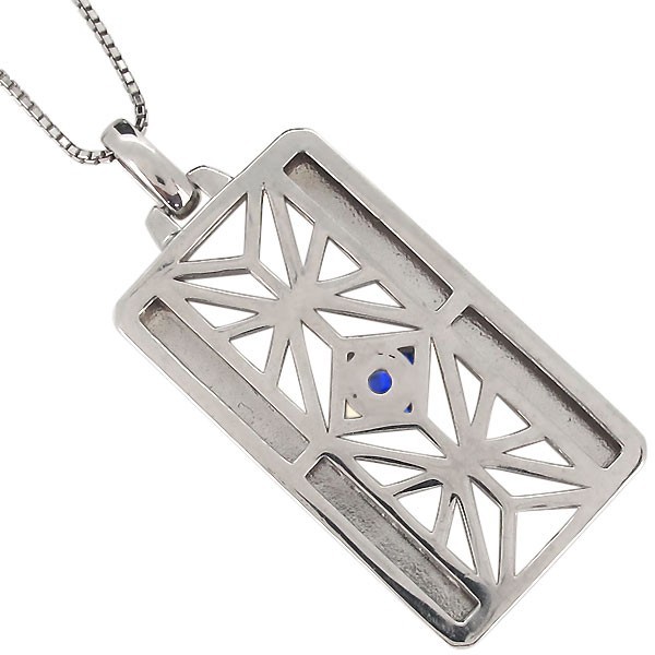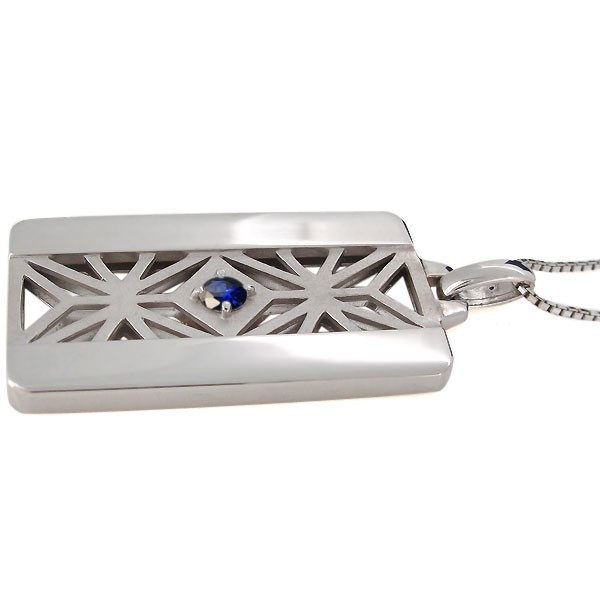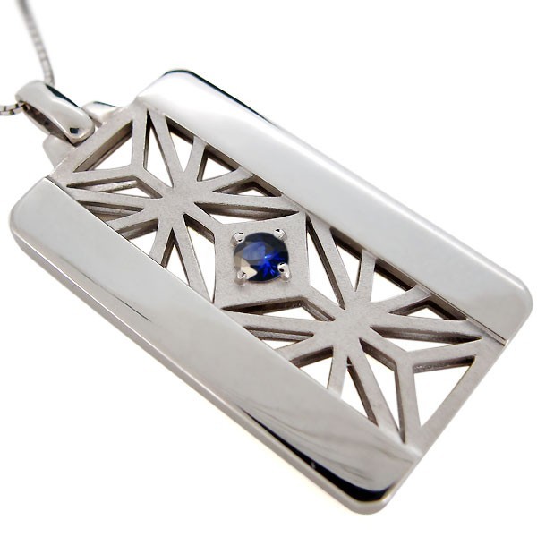 9月誕生石サファイアを使用したプラチナ製の、麻の葉模様のメンズネックレス(ペンダント)です。