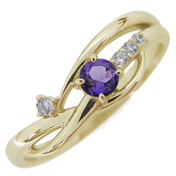 2月誕生石アメジストを使用した18金製の、シンプルデザインリング(指輪)です。
