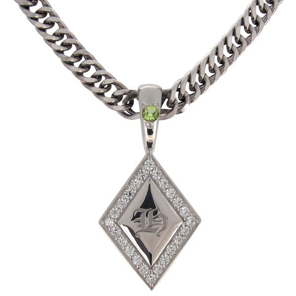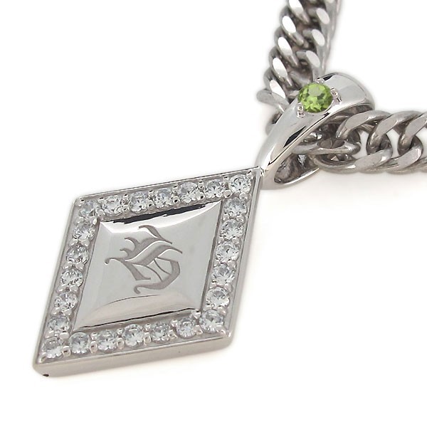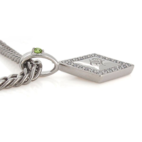 8月誕生石ペリドットを使用したプラチナ製の、シンプルデザインメンズネックレス(ペンダント)です。