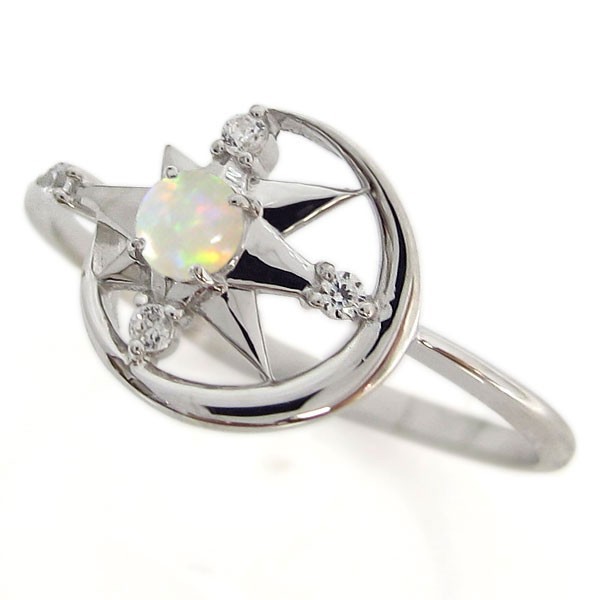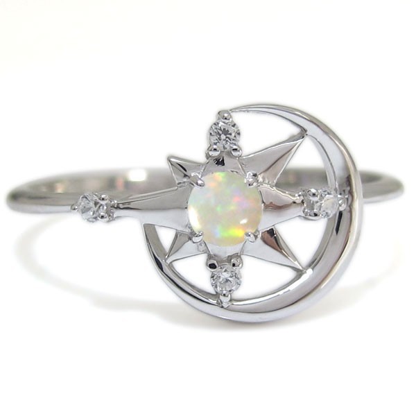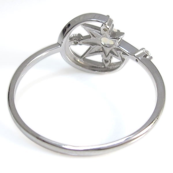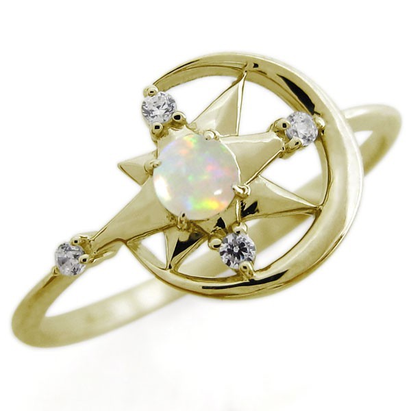 10月誕生石オパールを使用した、10金製の三日月(ムーン)星(スター)モチーフリング(指輪)です。