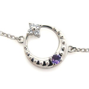 2月誕生石アメジストを使用したプラチナ製の三日月(ムーン)星(スター)モチーフブレスレットです。