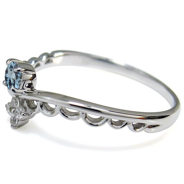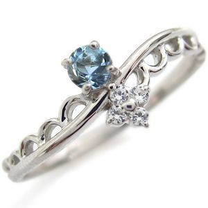 ■石名:主石 アクアマリンサンタマリア(約3.0mm 天然石使用)脇石 ダイヤモンド(4石合計で約0.04ct 天然石使用)