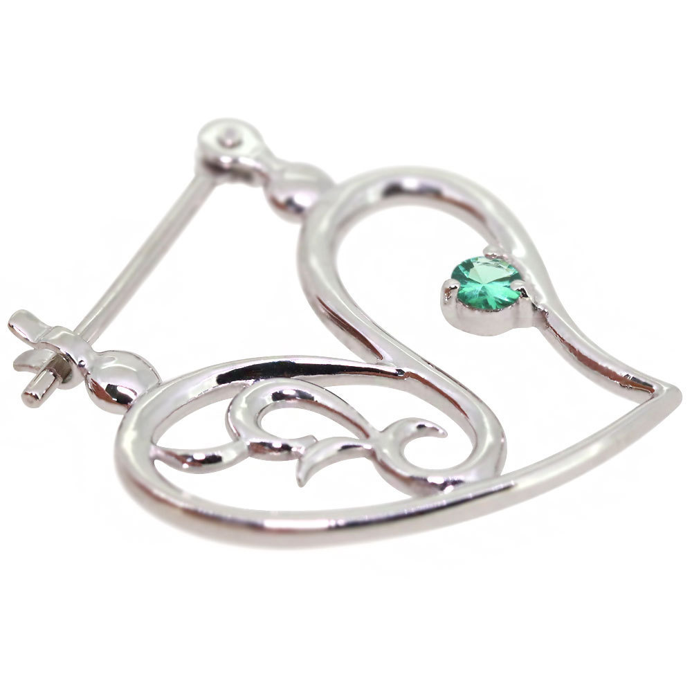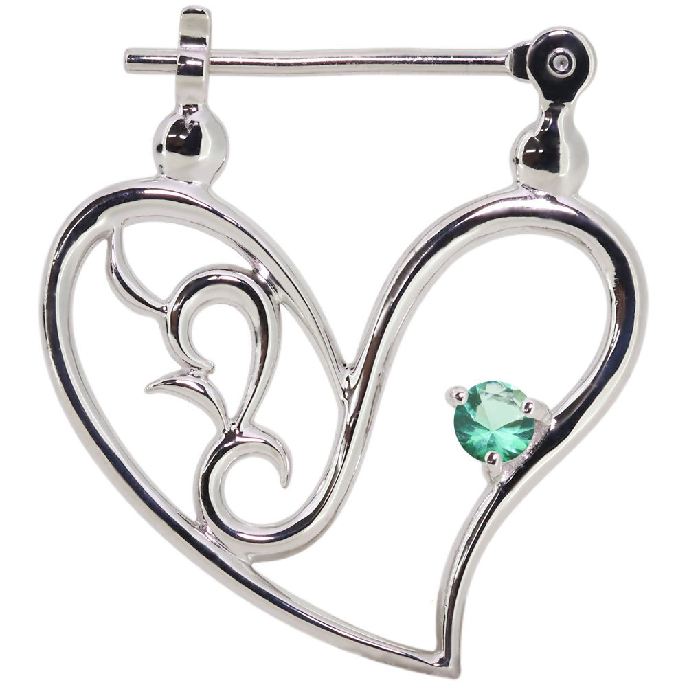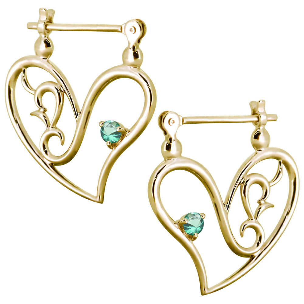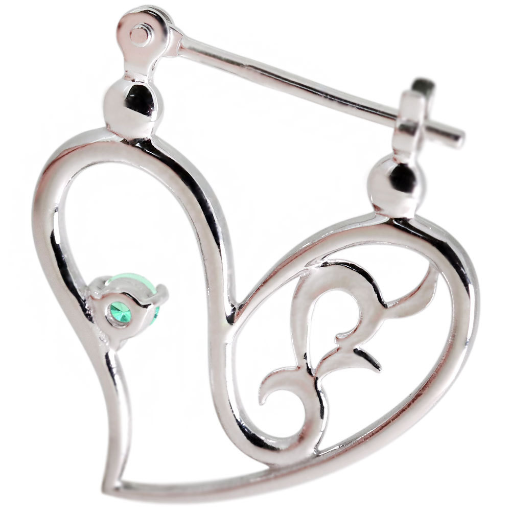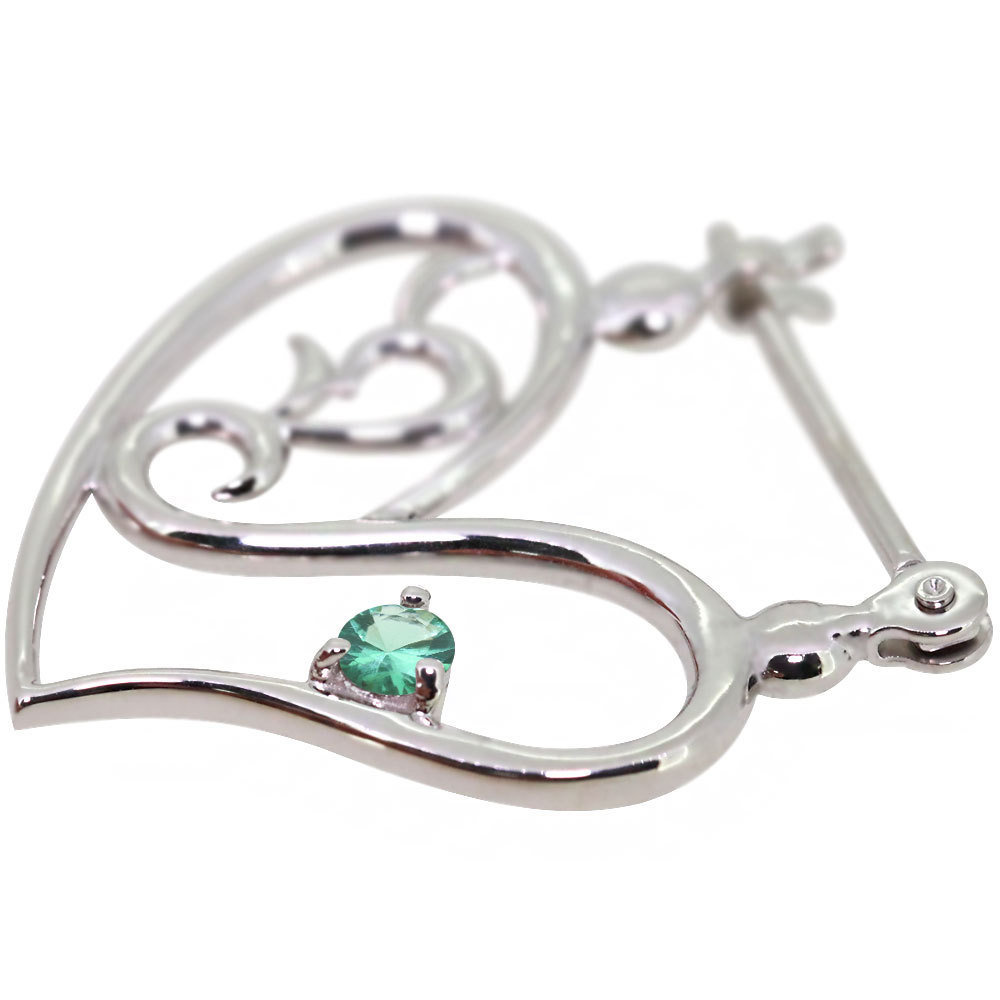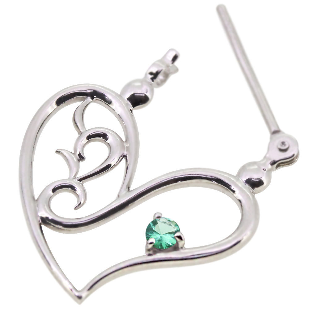 5月誕生石エメラルドを使用した10金製の、ハートモチーフのクロッシングピアスです。