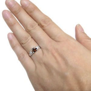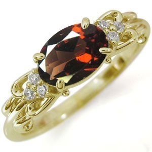 ■石名:主石 ガーネット(オーバル 約 5.0mm×7.0mm/天然石使用)脇石 ダイヤモンド(6石合計で約 0.06ct/天然石使用)