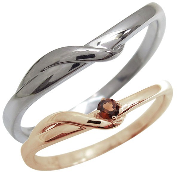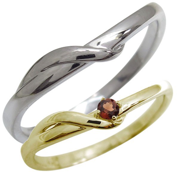 ペアリング シンプル 2本セット 10金 ガーネット 1月誕生石 指輪 カップル