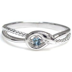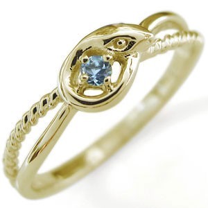 3月誕生石アクアマリンサンタマリアを一粒使用した18金製の、スネーク(蛇)&ロープ(縄)モチーフリング(指輪)です。
