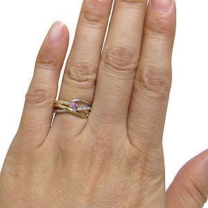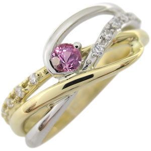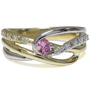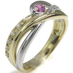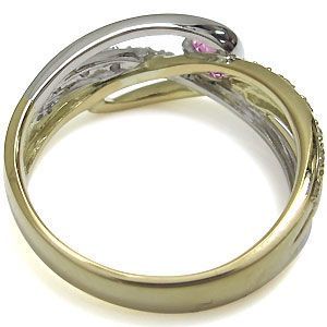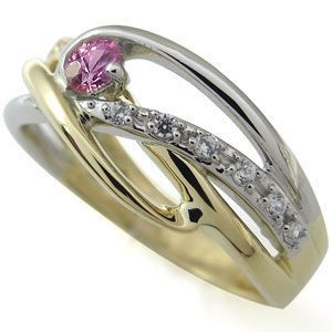 9月誕生石ピンクサファイアを一粒使用した、18金とプラチナ製のコンビリング(指輪)です。