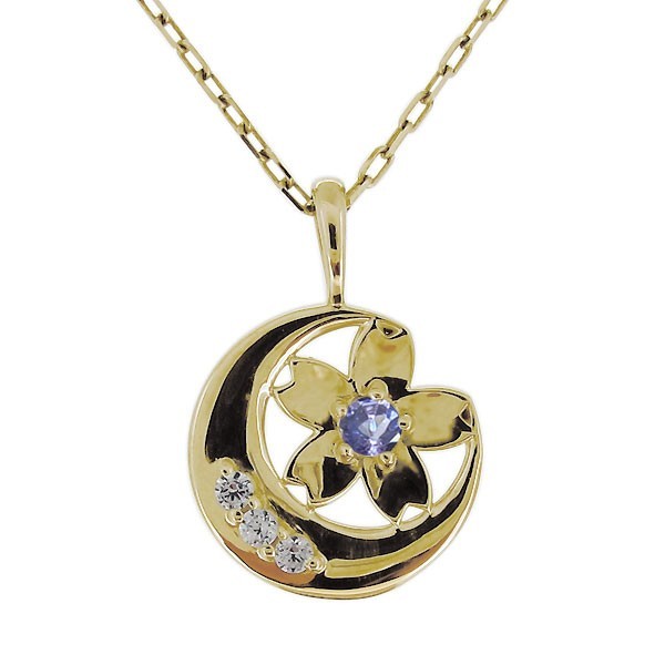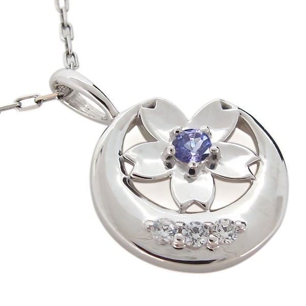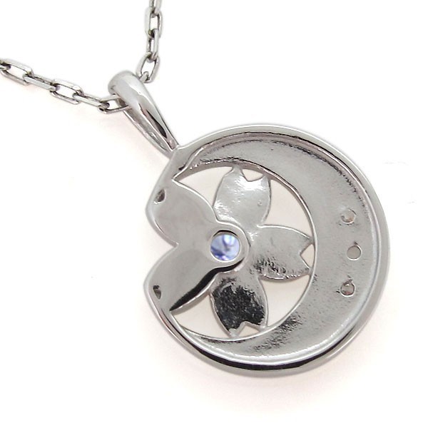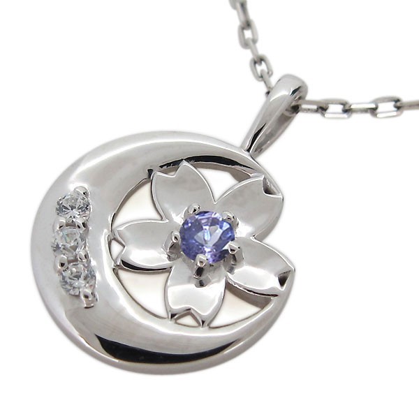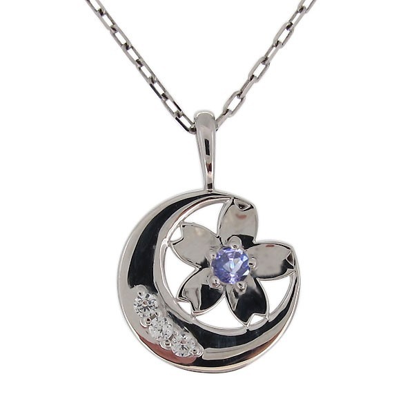 12月誕生石タンザナイトを使用したシルバー製の、桜(フラワー)と三日月(ムーン)モチーフレディースネックレス(ペンダント)です。