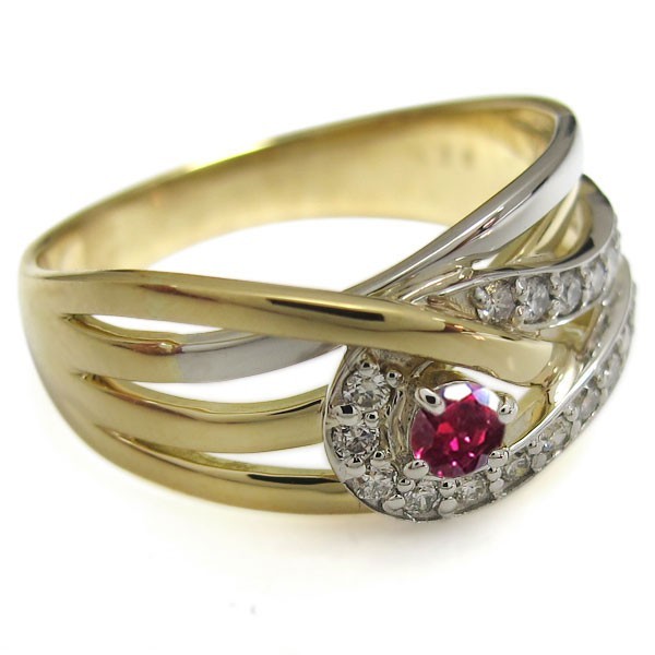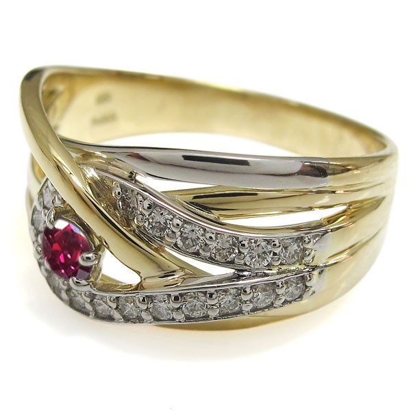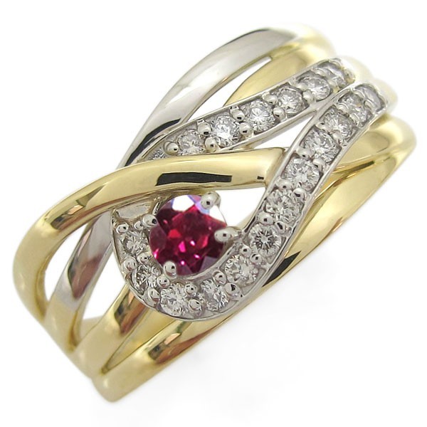 7月誕生石ルビーを使用した18金とプラチナ製のコンビリング(指輪)です。